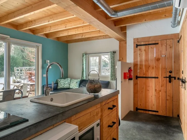 Op de benedenverdieping vind je een ruime zithoek, op de (slaap)bank kun je heerlijk loungen. Aan de gezellige eettafel is het goed toeven en de volledig ingerichte landelijke keuken biedt je alle mogelijkheden, van broodjes afbakken tot het bereiden van een volledige maaltijd. Koelkast, magnetron/oven, vaatwasser, Nespresso koffiemachine, waterkoker en inductiekookplaat behoren tot de standaarduitrusting van de keuken. De benedenverdieping is voorzien van vloerverwarming, de inloop/regendouche met vaste wastafel en spiegel en aparte toiletruimte. Op de bovenverdieping vind je in de master bedroom een luxe 2 persoons boxspring en de mogelijkheid tot het plaatsen van 1 luxe opvouwbaar 1 persoons bed. In de andere kamer vind je 2 luxe 1 persoons boxsprings. Beide kamers beschikken over een ruim uitzicht en een sfeervolle warme houten vloer.