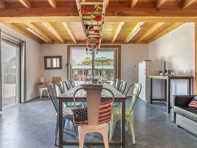 Wakker worden met een orkest van vogelgezang, bij de eerste zonnestralen de houten schuifdeuren openen en de geur opsnuiven van je eigen gebakken broodjes. Geniet, na een plezierige buitenrit, in de nabijheid van je paard op het sfeervol en gezellig erf bij een knapperend vuurtje. Ook je huisdier is van harte welkom.