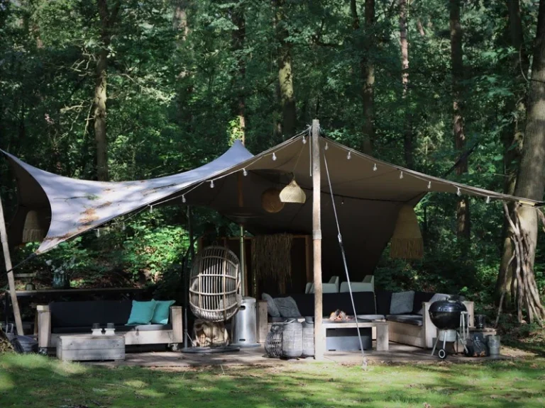 Tijdens je verblijf kun je ook genieten van de tuin en eigen terras met veel privacy. Er is een grote outdoortent met lounge-zit waar je tot laat heerlijk kunt vertoeven bij een vuurtje. Buiten vind je ook een Jeu de Boulesbaan, de Sauna en de Jacuzzi. Het boshuisje beschikt over 2 stallen met paddock.