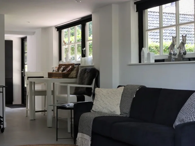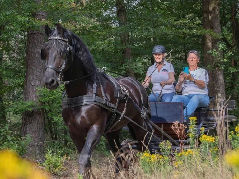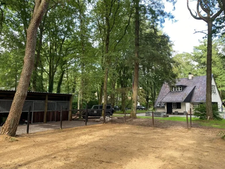 We hebben met 2 paarden en 2 personen hier verbleven van 19 t/m 22 juni 2025. Huisje: Je verblijft hier bij de eigenaren op het erf, maar hier merk je niks van! Naast dat de eigenaren super vriendelijk zijn is er ook genoeg ruimte & groen aan de achterzijde van het huis om elkaar de hele dag niet te zien haha. Er zijn veel plekken waar je buiten kan en mag zitten. Onze favorieten plek was onder de tent buiten helemaal achter in de tuin waar een hele lekkere bank staat en een lekkere hang stoel. Huisje is ruim, fris en netjes. Je kunt een Jacuzzi en sauna per dag bij huren. Leuke toevoeging. Ontbijt zit erbij! Per dag kun je via een bestellijst invoeren wat je wil hebben als ontbijt en de tijd wanneer je deze wil ontvangen, heel lekker en luxe en genoeg keuze! Het ontbijt is in de vergaderzaal, die aan je huisje grenst. Paardenonderkomen: De paarden staan in eigen beheer. Je kunt max. 2 paardjes meenemen. Overdag kunnen ze in de paddock staan en de nacht op stal. Je hebt een eigen plek en kan zelf bepalen hoeveel en wanneer je hooi wilt voeren. Daar ben je helemaal vrij in. In de paddock hangt een groot hooi net en in de stallen zijn er hooiruiven, maar wil je op de grond voeren is dit ook helemaal goed. Er staan 2 waterbakken in de paddock die je zelf moet vullen. Ook staat er stroom op de omheining die je zelf aan en uit kan zetten. Mest dien je zelf uit de paddock/stal te halen, maar je hoeft het alleen in de kruiwagen te gooien en zij ruimen het verder op. Er is een grote schuur waar je je spullen kwijt kan. Hier hangen 2 zadelsteunen. Wij miste een klein beetje wat extra haakjes/plankjes waar je je overige spullen kon laten. Dit als tip meegegeven en daar werd heel leuk op gereageerd! Ruiterpaden: De ruiterroute vonden wij zelf wat minder dan dat wij gewend zijn van vakantie elders. Je moet vrij lang stappen om echt op lekkere paden te komen waar je even een flink drafje of galopje kan inzetten. Ook moesten wij hiervoor een langere tijd (zeker wel 20 minuten) over een drukke weg lopen met onze paarden. (Nu was er ook een viaduct afgesloten waar je onderdoor moest dus wellicht lag het daaraan) Nu zijn onze paarden goed verkeersmak, dus was het voor ons niet een mega probleem, maar dit is niet ieder paard. De routerroutes richting de Cantharel zijn fijn! Hier kun je heerlijk rijden, maar let wel op dat er op sommige wat hardere paden boomwortels/stronken op verschillende plekken naar boven komen. Wel waren er in dit gebied helaas veel hertenluisvliegen en dazen waar onze paarden flink last van hadden. Maar dat komt ook, omdat het in de winter natuurlijk niet gevroren heeft. Wij vonden het al met al een heel fijn verblijf! Owja ze hebben heerlijke ijscoboer op loopafstand! En de AH ligt ook op loopafstand van het huisje.
