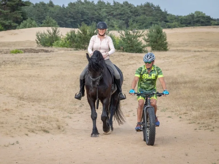 Vanaf de accommodatie rij je zo het bos in met aansluiting op het ruiter- en menroute netwerk.
