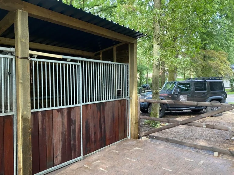 Er zijn 2 afsluitbare paardenboxen met een paddock. Geen weidegang. Meer paarden meenemen? Informeer naar de mogelijkheden. Stalling en weidegang mogelijk in de directe omgeving van het boshuisje.
