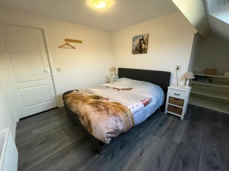 Er is een trap naar boven naar een slaapkamer met een 2-persoons bed. Eventueel kan hier een peuterbed of wiegje bij gezet worden. Er is ook een extra slaapkamer bij te huren met twee 1-persoonsbedden.