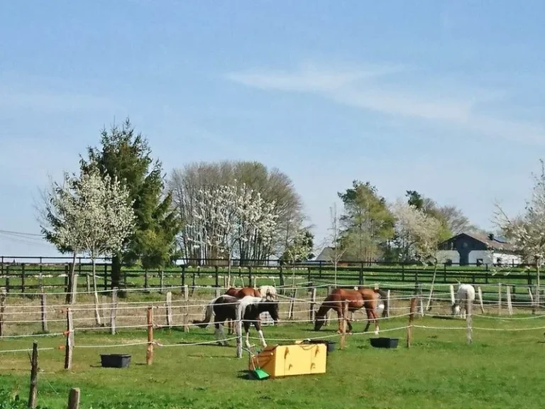 De paardengasten hebben toegang tot weidepaddocks, er zijn twee staltenten met elk twee aparte boxen en paddocks. Indien gewenst, kan je een box in de paardenstal krijgen - er zijn 2 boxen van 3,50x3,50. Zadels staan opgeborgen in de stallen.