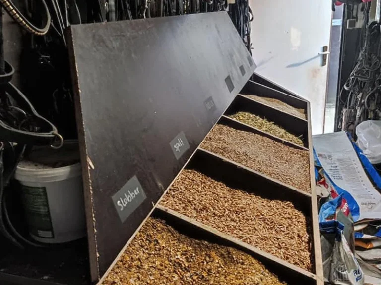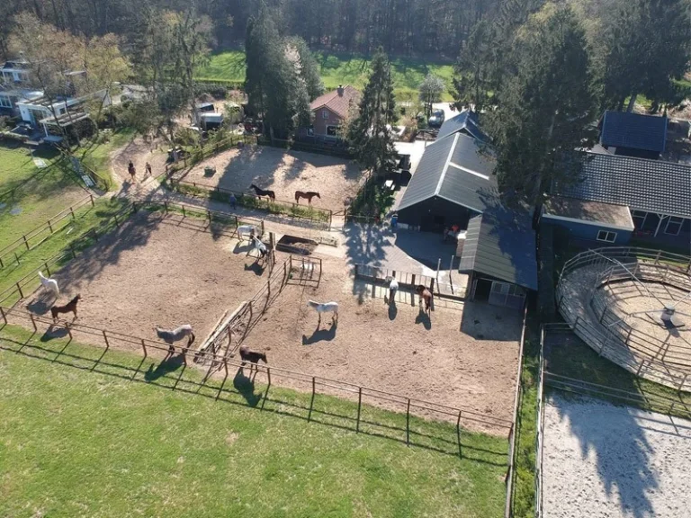 Ruime open boxen met drinkbakken en onbeperkt toegang tot hooi. 2x daags mogelijkheid om krachtvoer te voeren. Ruime hout omheinde paddock met onbeperkt hooi en waterbak.