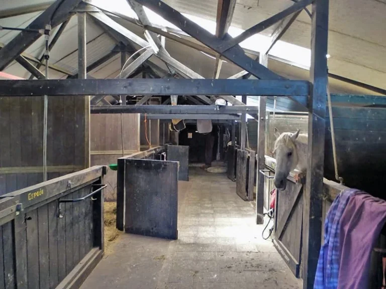 Vanuit de Bed & Breakfast kun je via de gang waar de toiletten en de douche zijn zo door naar de stallen.